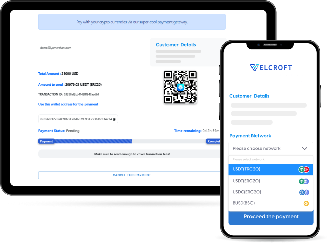 Payments should be seamless and borderless. Velcroft enables your business to accept crypto payments.